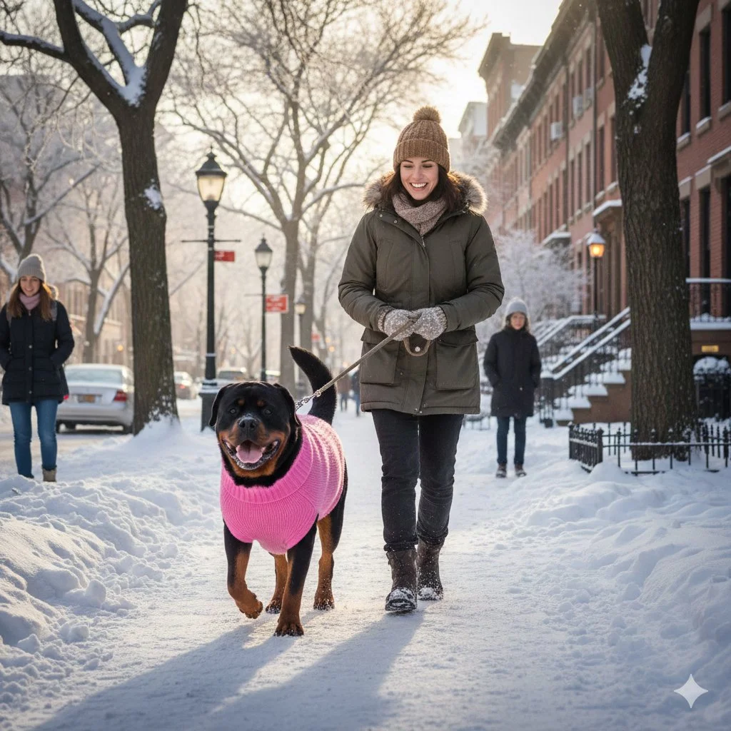 If you own a short haired dog and live in a country that gets cold, you might put it in some kind of jumper when the temperature drops.